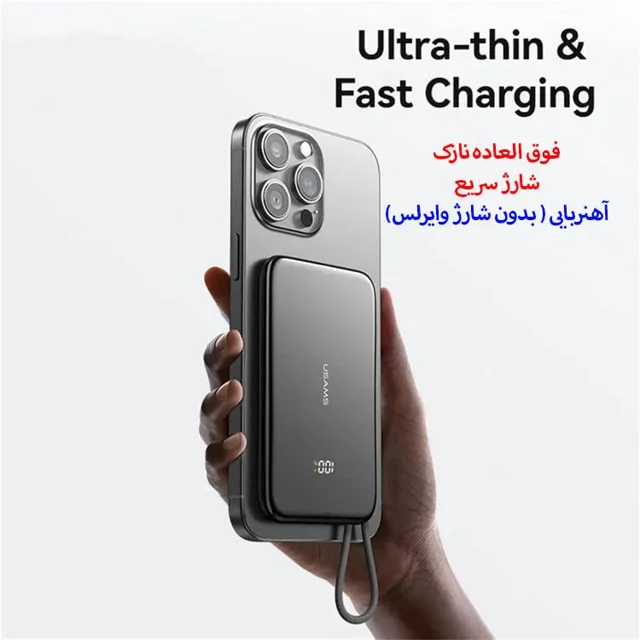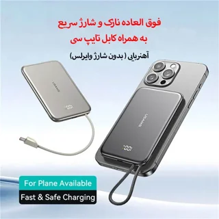 مکان شارژ ۲۰ وات با کابل متصل تایپ سی، مناسب برای مدلهای آیفون سری ۱۵ و ۱۶، دارای درگاه تایپ سی ورودی و خروجی با حداکثر توان ۲۰ وات، طراحی بسیار نازک و سبک، تضمین شارژ سریع و کارآمد برای دستگاههای شما.